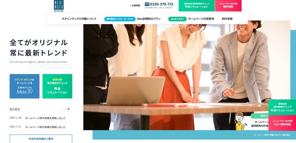 幅広い制作ニーズに対応しており、コーポレートサイト、ランディングページ(LP)制作、ブランドサイトのリニューアルなどを得意としています。ニッセンやP&Gといった大手企業から、沖縄県内で半世紀以上の歴史を持つ老舗の衣装店まで、多様な業種・規模における豊富な実績を有している点も大きな強みです。