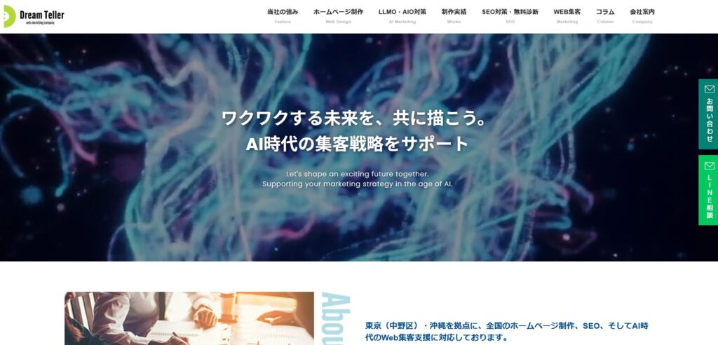 | 価格感 | コーポレートサイト:70万円〜150万円 美容サロン・店舗サイト:50万円〜100万円 採用特設サイト:50万円〜150万円 オウンドメディア・サービスサイト(SEO強化型):80万円〜150万円 AI時代対応サイト (LLMO/AIO):150万円〜300万円 |
