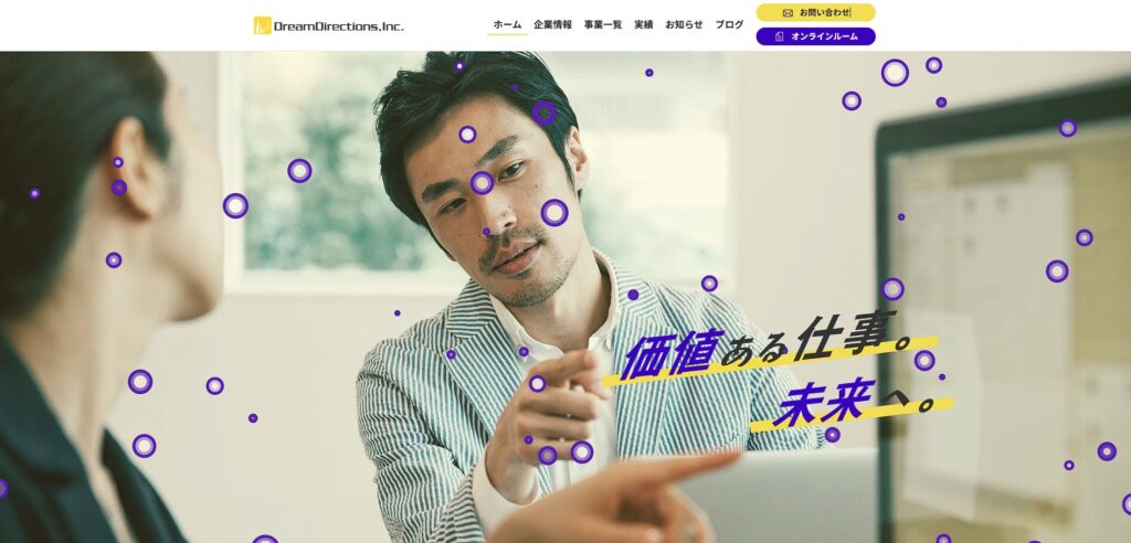 株式会社ドリームディレクションは、Web制作、グラフィックデザイン制作、自社メディア運営、コンサルティング、人材紹介など多岐にわたる事業を展開している会社です。