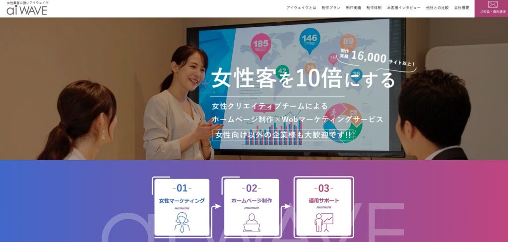 同社の最大の特徴は、女性スタッフが半数以上在籍している体制を活かした「女性向けWebサイト制作」への専門性です。幅広い年齢層のスタッフが多角的な視点で制作に携わり、長年の経験から蓄積された独自のノウハウを駆使して、女性消費者の心理に響くデザインや構成を追求しています。フォントの微調整による成果向上事例など、きめ細やかな対応で競合との差別化を支援しています。