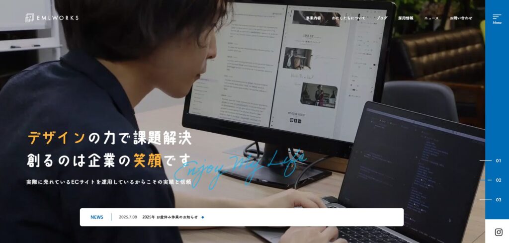 大阪府大阪市に拠点を置くEMLworksは、コーポレートサイト、ECサイト、採用サイトの制作・運営を手掛ける傍ら、自社でアパレルブランドの展開も行っている企業です。