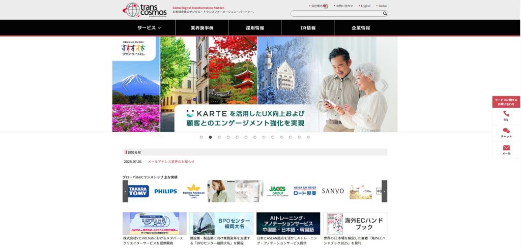 渋谷区渋谷に本社を置くトランスコスモス株式会社は、Webサイト制作を軸にIT分野の広範な業務に対応する総合制作会社です。