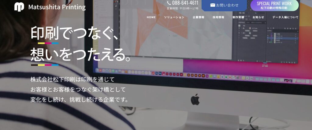 株式会社松下印刷は、徳島県に本社を置く老舗の印刷会社です。チラシやパンフレットといった紙媒体の制作を中核としながら、ホームページや電子ブックなどのデジタルコンテンツ領域でも幅広い実績を積み上げています。
