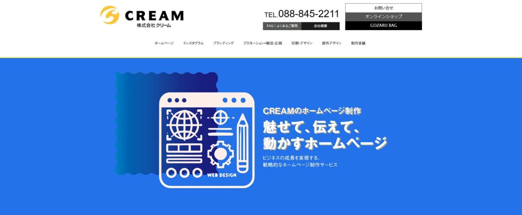 高知県高知市に拠点を構える株式会社クリームは、Webサイト制作を核に、ブランディング、販促・広報デザイン、さらには屋外デザインまでを幅広く手掛けるクリエイティブカンパニーです。