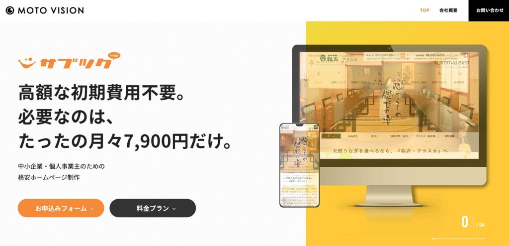MOTO VISIONは、島根県を拠点にWebサイト制作事業を展開している制作会社です。中小企業向けに最適化されたサービスを特徴としており、初期費用等の負担を抑えたサブスクリプション制の料金体系を採用しています。