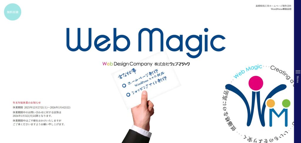 株式会社ウェブマジックは、ホームページ制作を専門に行っている島根県の企業です。ユーザー視点に立った設計を重視しており、訪問者が求める情報に的確にアクセスできる構成と、クライアントの発信したい情報を正確に伝える表現を両立させています。
