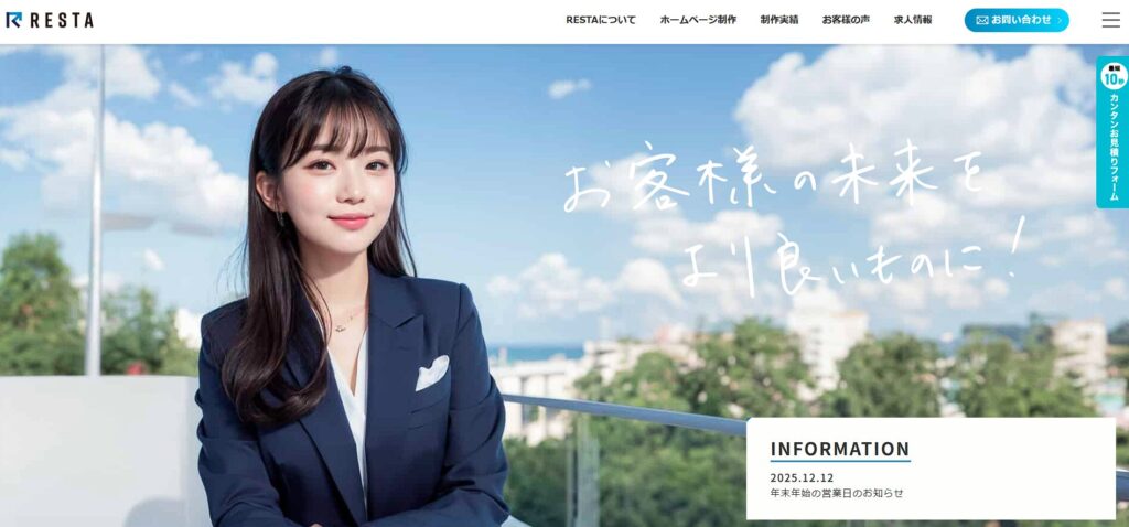 RESTAは、WebデザインおよびWebサポートなどのデジタル関連事業を展開している制作会社です。Web・アナログ双方のマーケティングにおいて1,000件以上の実績を有しており、その知見を活かしたサイト構築を特徴としています。